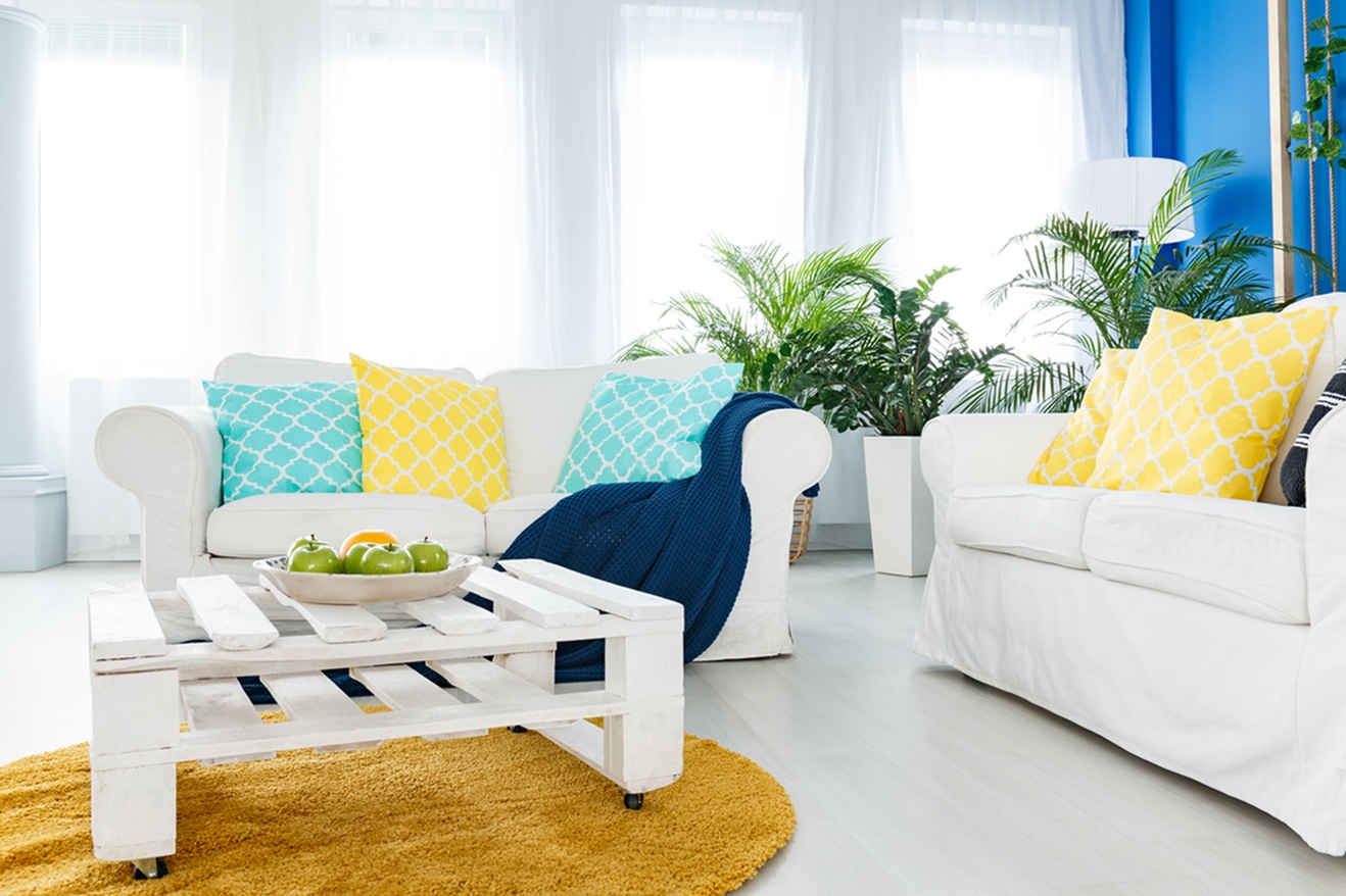Decorate with soft blues, whites, sandy neutrals, and touches of turquoise. These hues reflect the natural palette of the ocean and help your space feel open, airy, and soothing.
