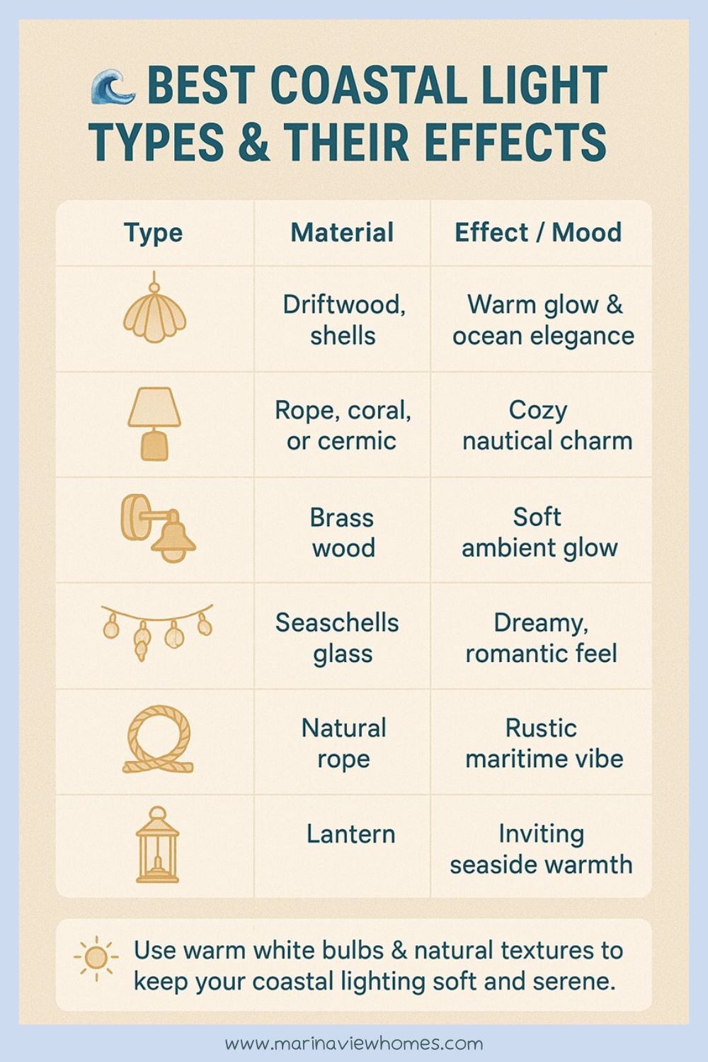 So, embrace the different lighting elements to truly capture the coastal essence: