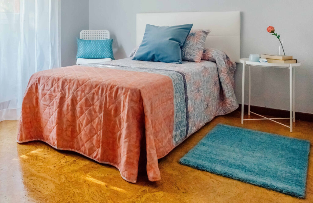 The goal of having aquamarine shades on your beddings is to mix a splash of fun and calmness. Picking bigger beddings than the mattress can provide a feeling of coziness.